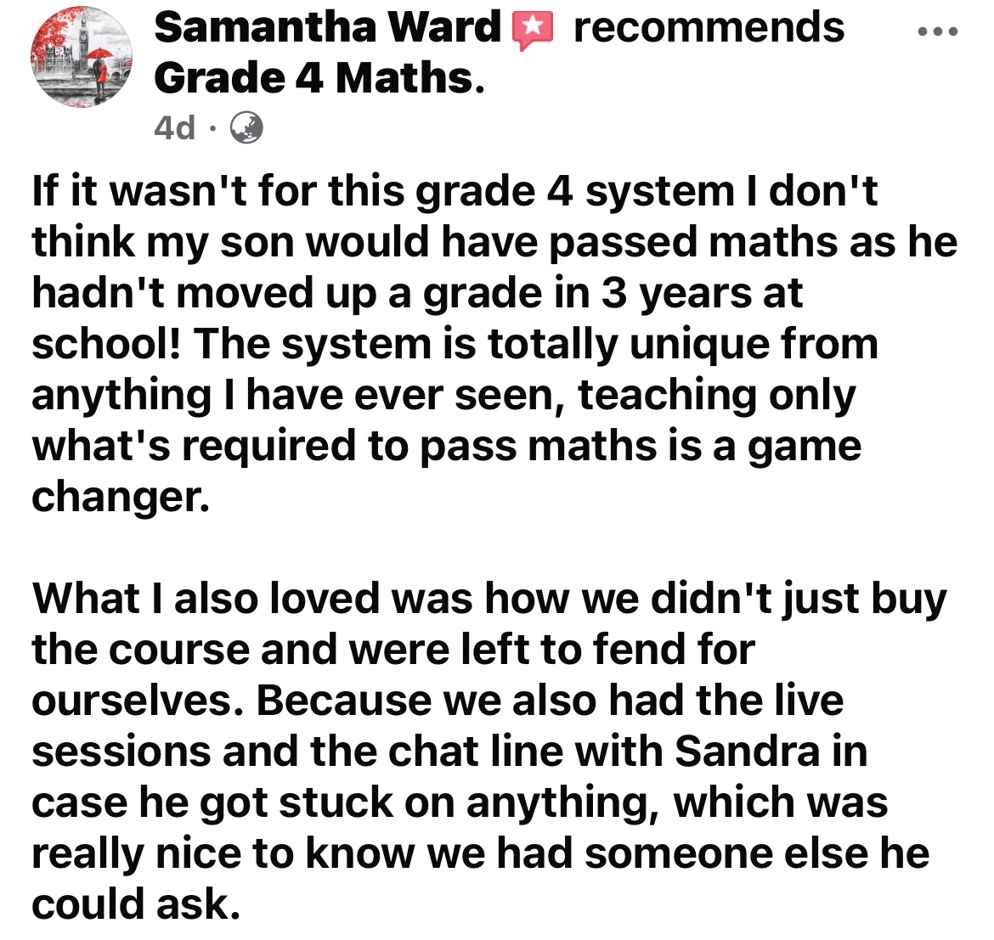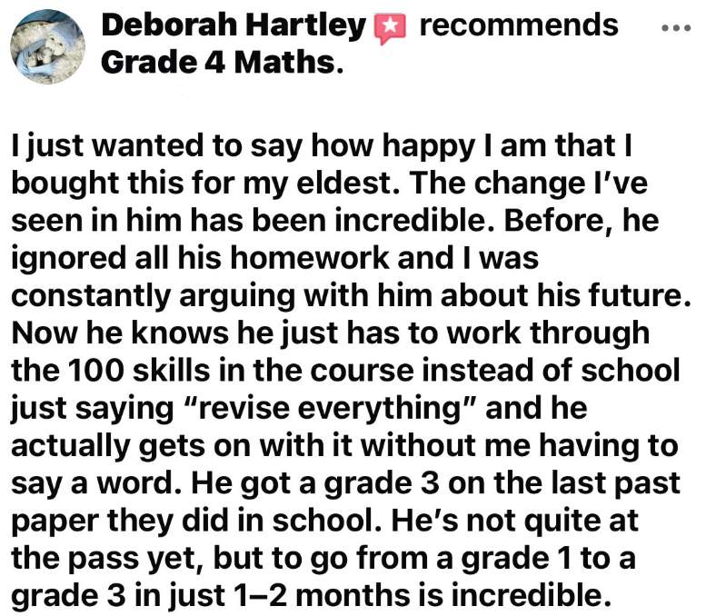 What other parents of Grade 1/2/3 maths students say after using the Grade 4 Package